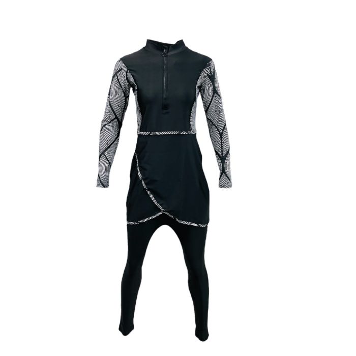 The Burkini black/white offers a perfect balance of elegance, modesty, and performance. This swimwear provides full-body coverage without compromising on comfort or flexibility.