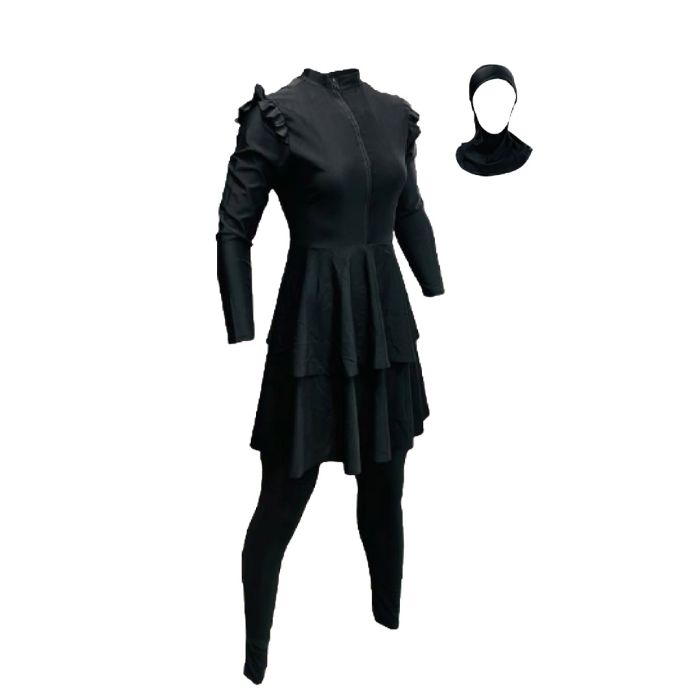 The Black Burkini is designed for women seeking comfort, style, and modest coverage in the water. Made from a premium poly-spandex fabric, this burkini is lightweight, breathable, and quick-drying, making it ideal for both poolside and ocean activities.