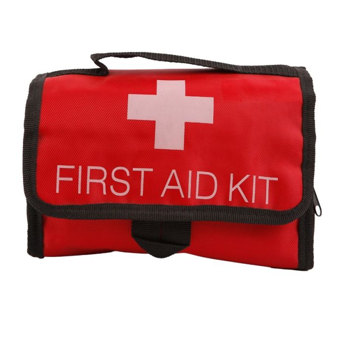 A comprehensive and compact kit designed for emergencies at home, travel, workplace, or outdoor activities. This portable kit comes in a durable red bag with a secure closure, making it easy to store and carry wherever you go.