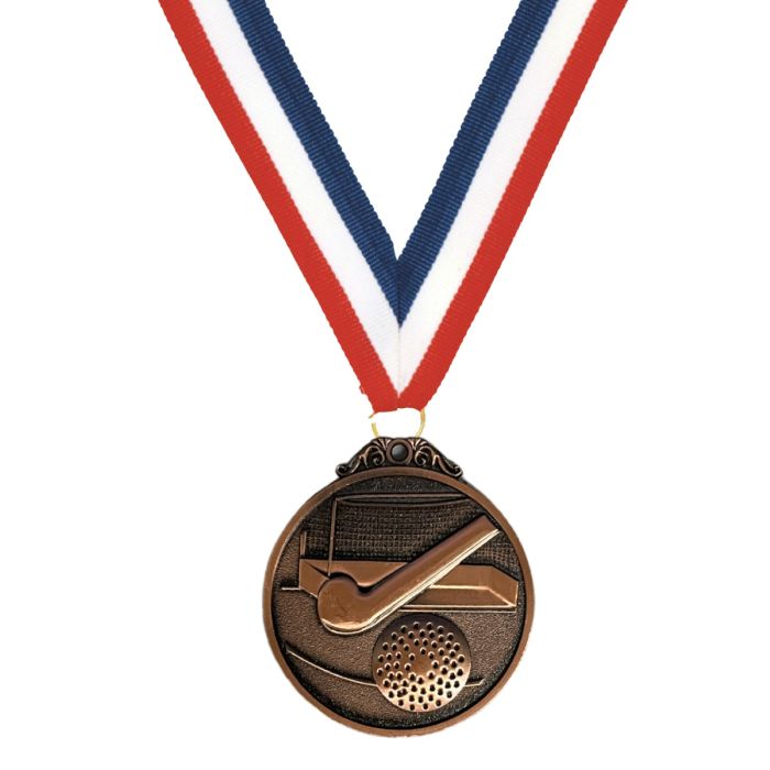 The Premiership Gold Hockey Medal is a stunning tribute to the game, featuring an embossed design of a hockey stick, ball, and goalpost. This intricate 5cm medal captures the essence of hockey, making it an ideal award for players and teams who demonstrate exceptional skill and sportsmanship. With its premium gold finish, it exudes quality and durability, perfect for school tournaments, sports clubs, and competitive leagues.