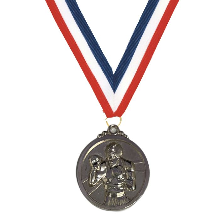 Celebrate boxing excellence with the striking Premiership Silver Boxing Medal. Featuring a bold, embossed design of a boxer in a ready stance with gloves raised in the ring, this medal embodies the spirit of strength, focus, and determination. Perfect for recognizing outstanding performance in the ring, this medal is a fantastic choice for any boxing competition or event. Its premium gold finish adds a touch of prestige to the award, making it a proud keepsake for all winners